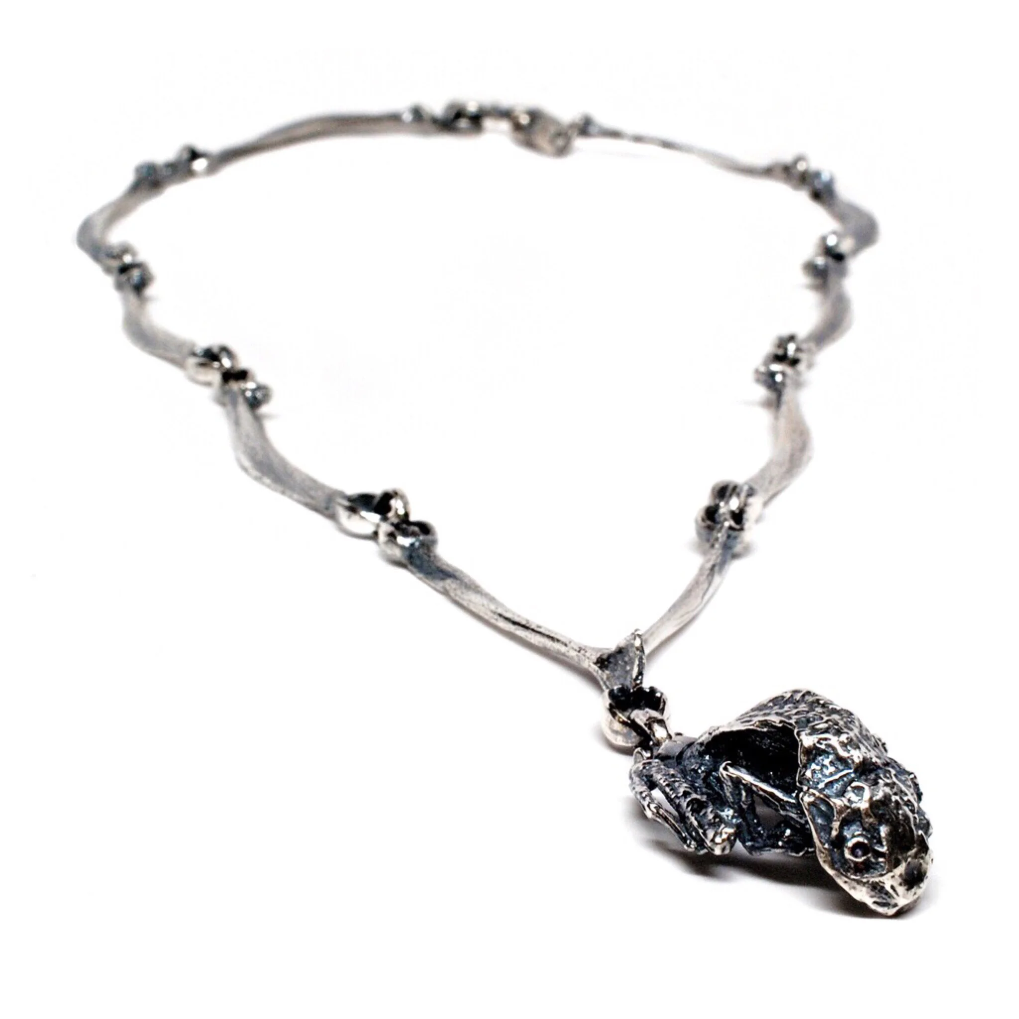 While the Animal Farm Collection personifies my desire to create fashion jewelry inspired by my love of the shapes of animals and insects – the Animus Collection is all about statement pieces. Like most of my jewelry the different collections are born from my strong desire to wear pieces that I can’t find anywhere else. What usually ends up happening is that people see these pieces on me, and ask me to make them one. Animus is really where it all started for me, and how people became aware of my work. Each piece truly has a story, from my pet scorpion who hung hard with me for couple of years, to lizards I found in my mother’s back yard, to the classic ram heads my ol’ man you used to sport when he was running around, it’s all here… for you to wear.